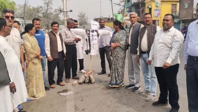बढ़ती महगाई के खिलाफ काग्रेंस का प्रदर्शन, केंद्र सरकार का पुतला फूंका