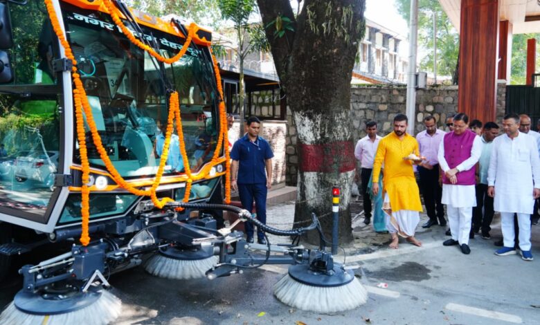मुख्यमंत्री पुष्कर सिंह धामी ने वैक्यूम बेस्ड रोड स्वीपिंग मशीन को दिखाई हरी झंडी