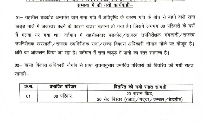 उत्तरकाशी: राना गांव में अतिवृष्टि के बाद राहत कार्यों की जानकारी जारी