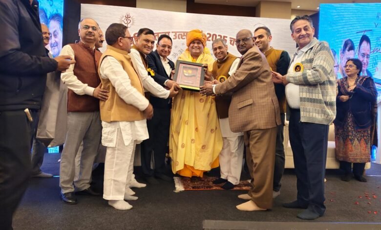 फोटो कैप्शन: 2 .चंडीगढ़ के जीरकपुर स्थित पार्क प्लाज़ा में आयोजित ‘शक्ति चेतना उत्सव’ में ‘सिद्धगुरुवर’ श्री सिद्धेश्वर ब्रह्मर्षि गुरुदेव का सम्मान करते हुए आयोजक।